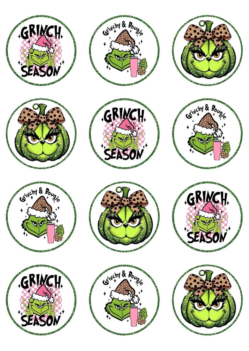 12 X Pre Cut Edible Icing The Grinch Christmas Film Drink Topper Cupcakes